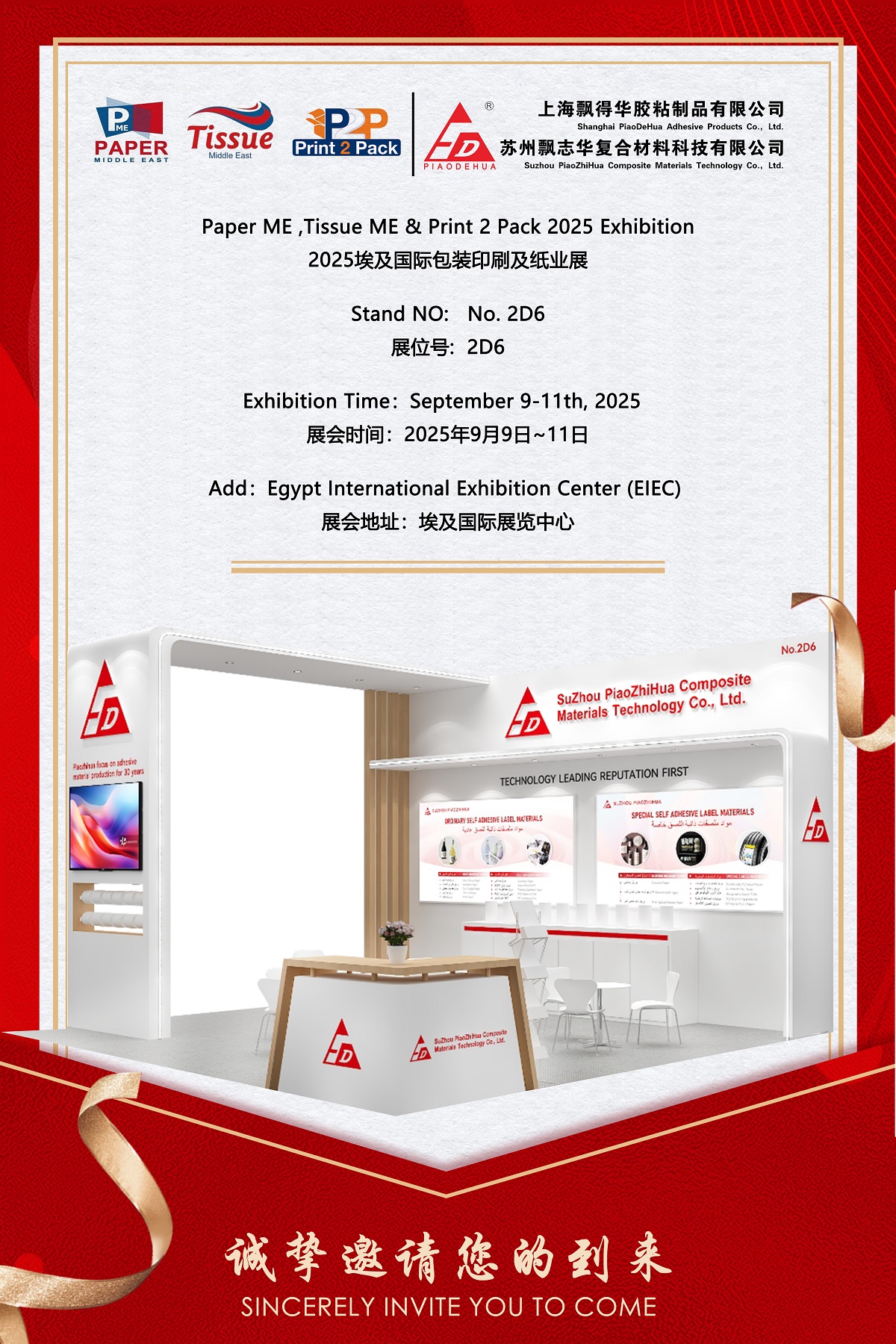 Suzhou Piaozhihua teruja untuk mengambil bahagian dalam pameran ME, Tisu ME & Print 2 Pack 2025, platform serantau utama untuk industri pembungkusan, percetakan, dan kertas, yang diadakan dari 9 hingga 11 September, 2025, di Pusat Pameran Antarabangsa Mesir (EIEC) di Kairo. Sebagai pembekal utama bahan label pelekat diri, Piaozhihua akan membentangkan pelbagai produk pelekat biasa dan khas di Booth No. 2D6, menonjolkan penyelesaian yang direka untuk kedua-dua aplikasi standard dan menuntut.
